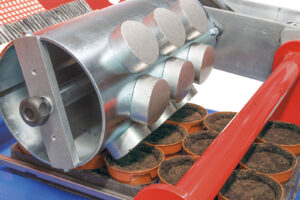 В линейке нового поколения поддоны двигаются по наполнительному конвейеру один за другим, что позволяет достигать максимальной однородности заполнения каждой палетки, включая те, которые находятся с краю. Имеется возможность откорректировать количество грунта с тем, чтобы получить на выходе заполнение низкой, средней или высокой плотности. Палетки прекрасно очищаются от излишней почвы, которая полностью перерабатывается. Формирователь лунок обеспечивает отцентрированное расположение палетки и абсолютно правильную форму отверстия. Все корректировки и настройки осуществляются при помощи удобной ручки. Низкий уровень шума обеспечивает удобство при работе оператора.