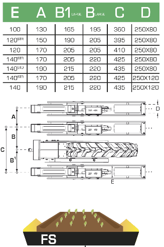 Высевающий элемент SNT-2-290 включает в себя два высевающих аппарата (по одному на каждую строчку), расположенных со смещением относительно друг друга. Такая конструкция позволяет проводить точный высев с высокой скоростью даже на влажной почве.