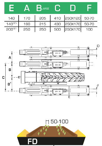 Универсальная и практичная модель, предназначенная для посева в одну или две строчки с минимальным расстоянием между центрами рядов 25 см, а между строчками с фиксированным 10 см. Подходит для работы на вспаханной земле.