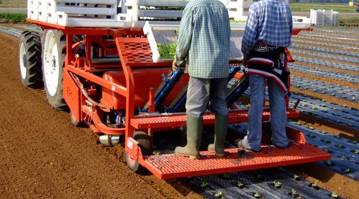 Рассадопосадочная машина с мульчированием, способная укладывать пластиковую плёнку, как полиэтиленовую, так и из биодеградируемого материала, закрепляя её на грунте, перфорировать почву и высаживать рассаду с земляными комками в виде прессованных кубиков в полуавтоматическом режиме, со средней производительностью около 5 000 растений в час на ряд.