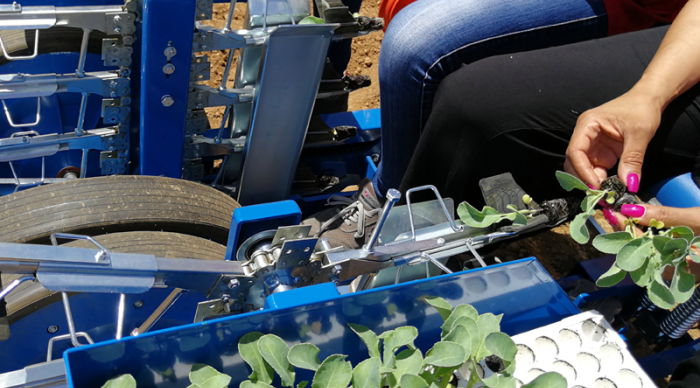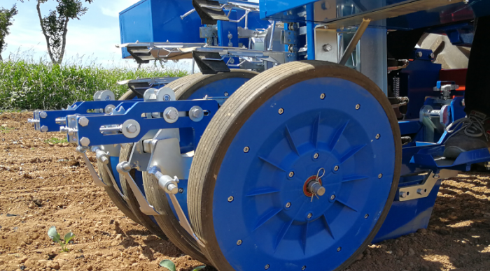 Рассадопосадочная машина с захватами для рассады с голым корнем и с земляным комом конической и цилиндрической формы с максимальным диаметром 5 см, а также кубической формы с максимальным размером 4х4 см.