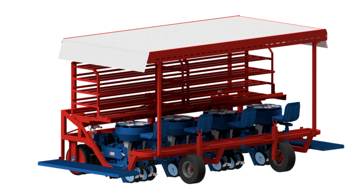 FX-MULTIPLA — это машина, оборудованная двойной ротационной каруселью (1 человек = 2 линии), подходящей для посадки овощей в пробки различной формы (пирамида, цилиндр, конус, …). Одна из самых интересных особенностей этого трансплантера — минимальное расстояние до ряда: 21 см (8 дюймов), что позволяет пользователю выращивать овощи с высокой плотностью, такие как салат, лук, брокколи, сельдерей, фенхель и многие другие. Посадочная машина MULTIPLA оснащена двумя независимыми параллельными связями, которые плавают на земле, чтобы обеспечить отличное качество посадки, даже когда условия грунта очень сложны. Этот трансплантер может работать как на плоских грунтах, так и на грядах.