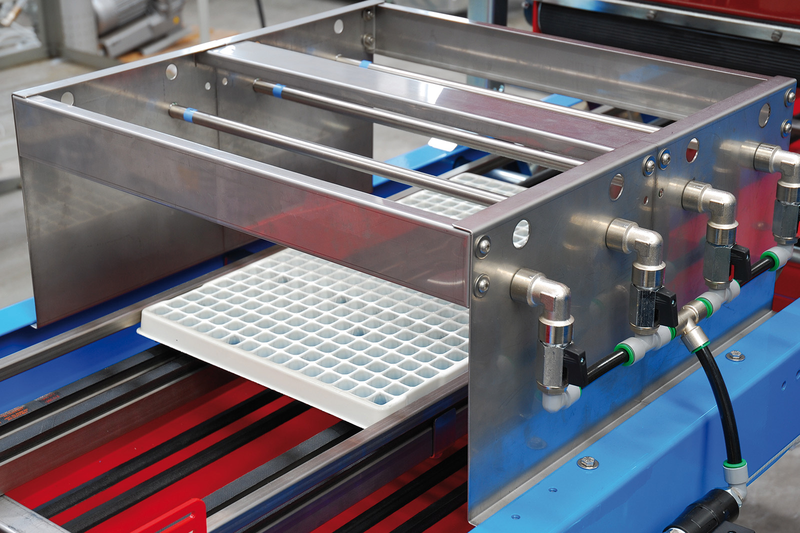 - Пневматическая машина — раздатчик палеток/кассет с двухтактным движением для поддонов из пенополистирола.