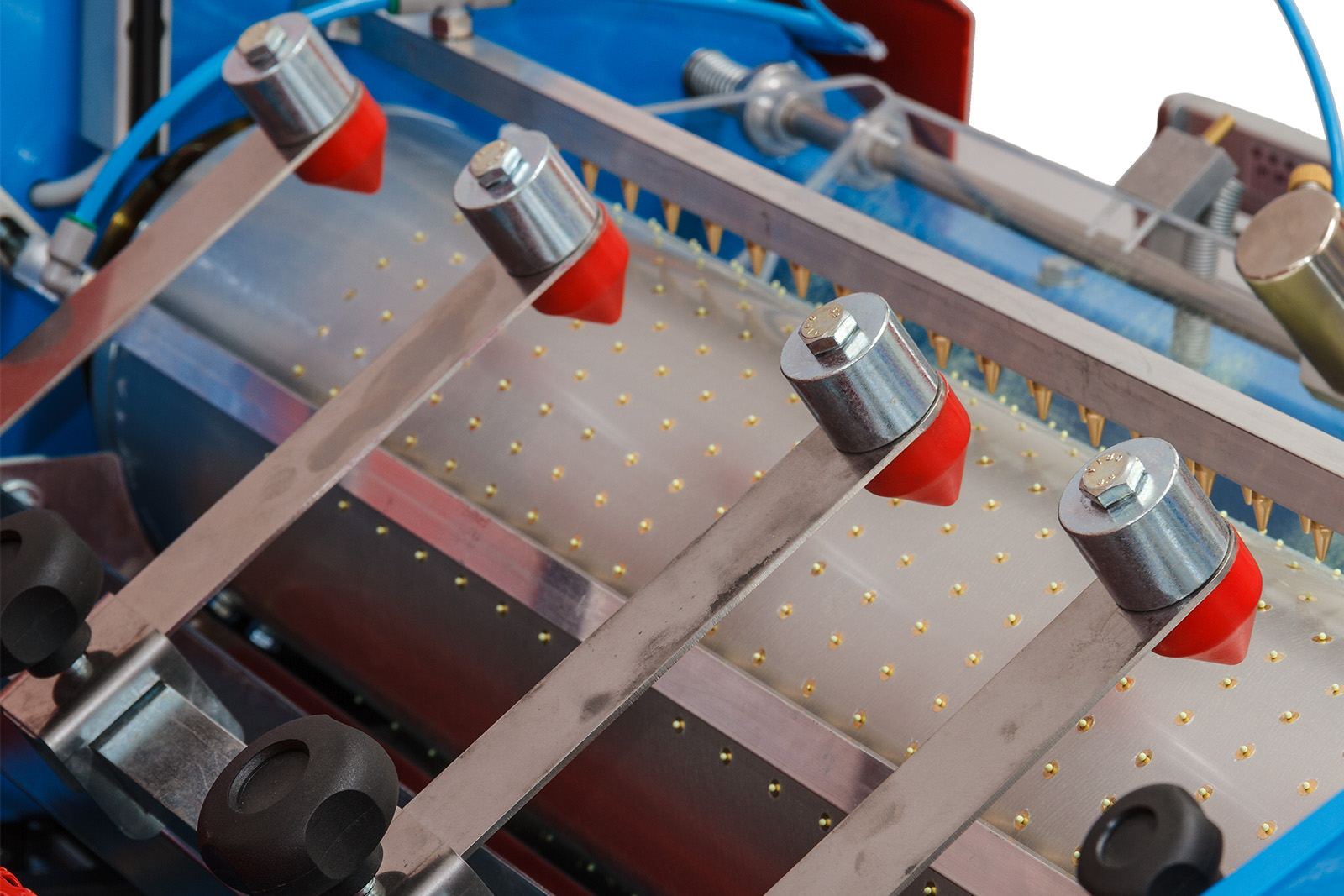 Формирователь лунок обеспечивает отцентрированное расположение палетки и абсолютно правильную форму отверстия. Технические решения посевной группы позволяют работать с большими и маленькими семенами. Может быть добавлен второй барабан для одновременного посева или дозированной добавки химических гранул. Быстрая замена типа семян и палеток благодаря быстрой регулировке и замене барабанов без какого-либо инструмента. Крышка барабана позволяет достичь большей однородности и позволяет выбрать рабочую ширину и количество заполняющего продукта с целью уменьшения затрат.