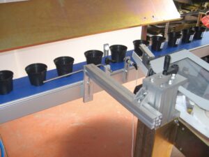 EZS наносит маркировки 40 x 40 мм на горшки 10 см.