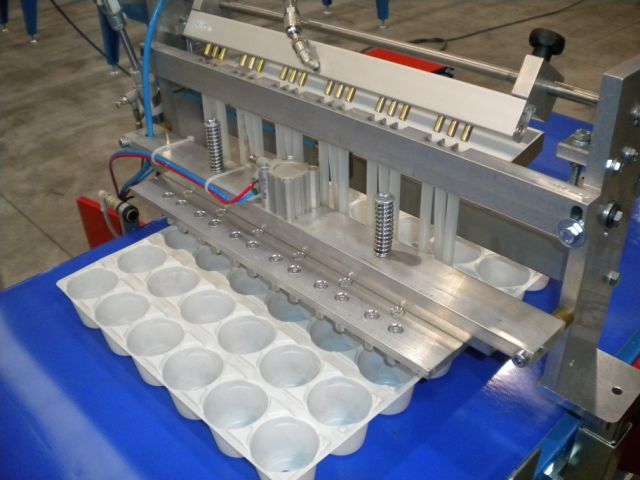 Посев осуществляется планкой с форсунками, которые всасывают семена и аккуратно и равномерно укладывают их в ячейки ряд за рядом. Также делается отверстие, в которое будет аккуратно вложена семечка.