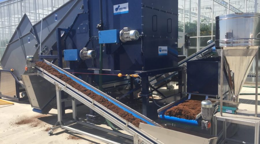 Coco Mill CM200 предлагает решение для производителей субстрата и крупных питомников, чтобы полностью автоматизировать регидратацию больших объемов койры. Кокосовые блоки осторожно падают внутри CM200, в то время как вода добавляется для регидратации блоков и получения желаемого процента влаги.