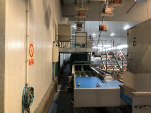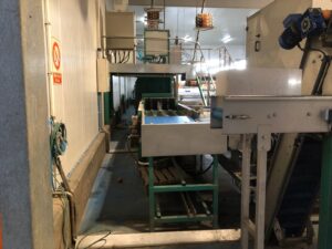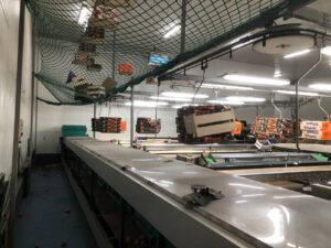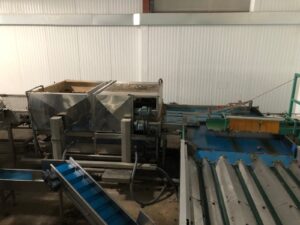 Укомплектованная линия, имеет все основные автоматизированные функции: корзины для погружения, элеватор, мытье/чистка, конвейер, сортировка, 5 упаковочных столов на выходе.