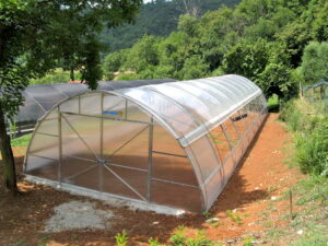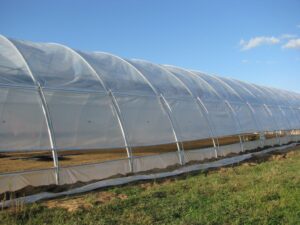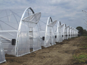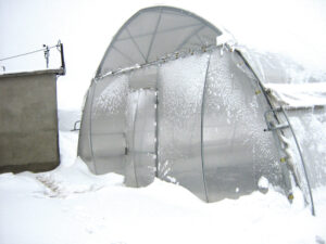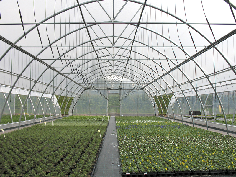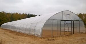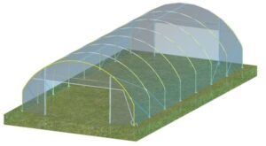 - оцинкованная металлоконструкция с (или без) поперечных усилителей на дугах в зависимости от местонахождения объекта (снеговая нагрузка) и от технологии выращивания (подвешенные нагрузки);