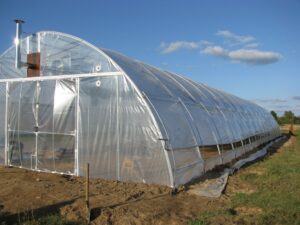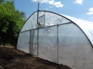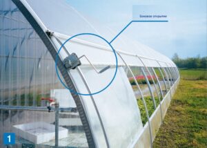 - преимущество боковых открытий в том, что можно отгружать готовую продукциюиз любого места теплицы, а не только из дверных проемов;