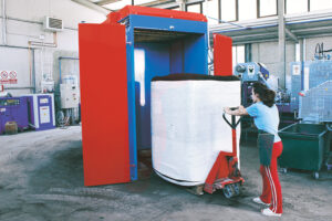 В машине используется Биг-Бег стандартного размера, который перемешивается; измельчаются более крупные комья грунта и добавляются необходимые удобрения.